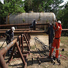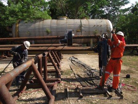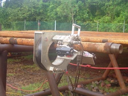 Realizamos inspección de tubería de perforación, completacion y encamisado de pozos de hidrocarburos y también de agua, de acuerdo a los normativos API estándar 7 y API RP 7G, API RP 5B y 5CT o de acuerdo a los parámetros del DS 1 categoria 3, por medio de 4 diferentes técnicas: Inspección electrónica: ARTIS-3 utiliza una cabeza con 25 sensores de defectos a toda la circunferencia y toda la longitud del tubo, que junto con una corona magnetica va montada sobre un carro maniobrado vía computadora, para detectar fallas como corrosión, erosión, fracturas y fisuras, entre otros. Ultrasonido: Sonatest Betagage & Masterscan se utilizan para una inspección de contacto y poder descubrir el lugar exacto de una falla o para medir la cantidad de perdida de espesor. Partícula magnética: Detecta discontinuidades a través de un campo magnético en un material ferromagnético, Inspeccion mecánica visual, que utiliza perfilometros de rosca, calibres, profundimetros y otras herramientas manuales para determinar daño visual en las conexiones (hilos, crestas y valles de las roscas) asi como otras partes de la tubería, (hombros, sellos, biseles, etc.).